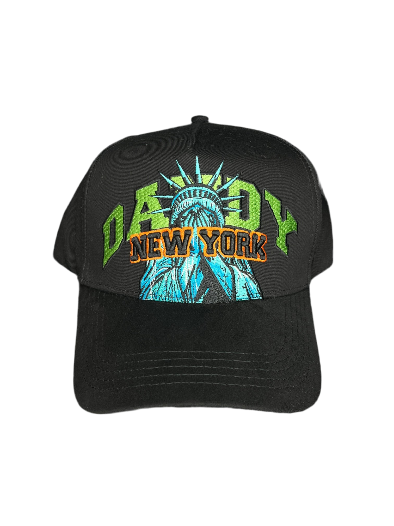 DANDY LIMITED EDICION, GORRA NEGRA CON ESTATUA DE LA LIBERTAD Y VICERA DE GAMUZA.